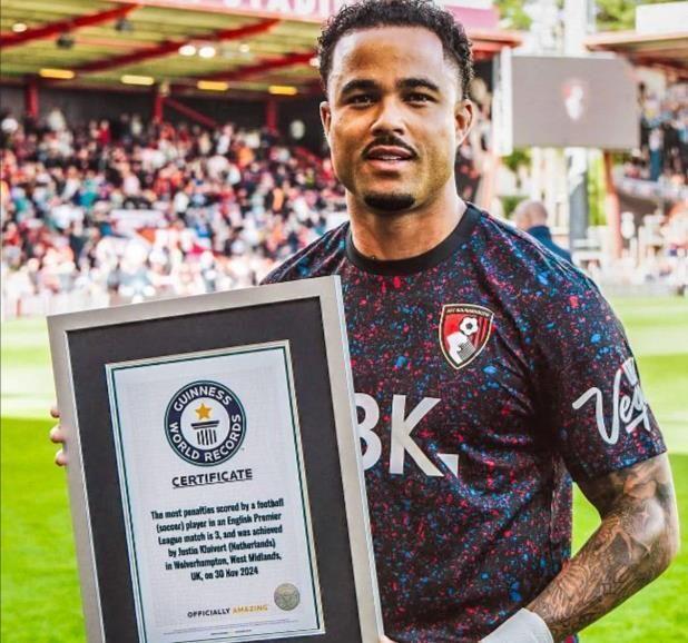 这一夜,小克鲁伊维特创造了英超新的历史,他成为英超史上首位单场点球帽子戏法球员。 在此之前,从未有人能在英超单场比赛中三次站上点球点并全部命中。最终,吉尼斯世界纪录官方认证了荷兰中场的“英超单场同一球员主罚命中最多点球”纪录。