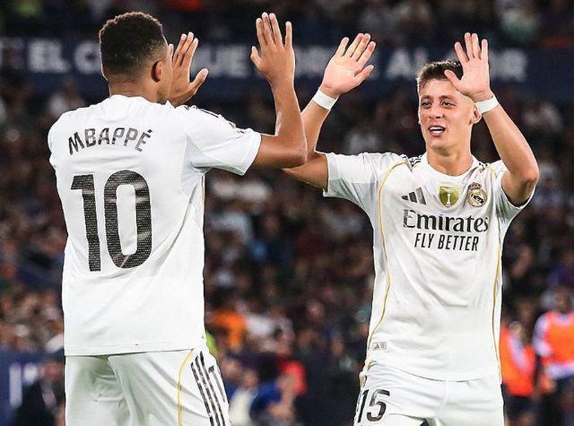 9月27日,西甲第7轮打响马德里德比,马竞主场迎战皇马。20岁的居勒尔,展现出大师风范:短短11分钟,妙传助攻姆巴佩破门,接着左脚凌空扫射打进赛季西甲第3球。居勒尔用魔术般的左脚,展现自己的才华,皇马主帅阿隆索一跃而起庆祝,为居勒尔欢呼。