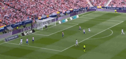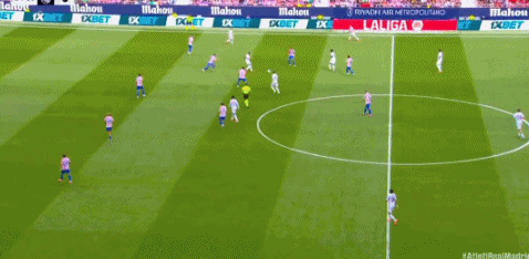 这是皇马的进攻,米利唐、琼阿梅尼传球,姆巴佩将球分给居勒尔。马竞的5人后防线、3人中场线,看上去密不透风,没有明显的空当。不过,居勒尔和姆巴佩心有灵犀,前者一脚斜传,撕开双层防线;后者高速插上,突入禁区低射得手!