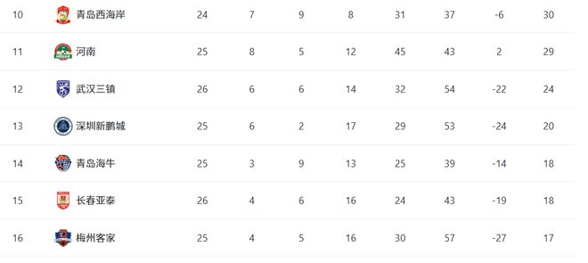 3队最危险!分别是倒数第一名的梅州客家队,倒数第二名的亚泰队以及海牛队!其中梅州客家队、海牛队比亚泰队少赛一场!但是从竞技状态来看,最危险的还是梅州客家队。本轮输给申花队后,梅州客家队已经连续5轮不胜。