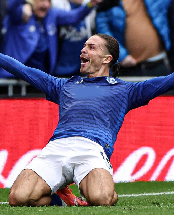 比赛第96分钟,终场哨声即将响起,双方1-1僵持。就在所有人以为战平已成定局时,埃弗顿右路的一次传中造成禁区混乱,水晶宫的穆尼奥斯从英雄变为“罪人”,慌乱解围,却阴差阳错地把球踢在格拉利什身上,皮球弹射入网!进球之后,格拉利什没有压抑任何情绪,他跪地怒吼、双拳捶胸,整座古迪逊公园在这一刻化为蓝色海啸。