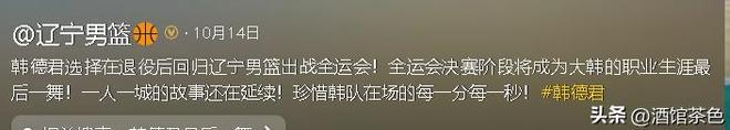 更让人感动的是,今年在辽宁男篮冲击全运会三连冠的关键时期,因为球队内线缺人,已经退役的韩德君在体育局的号召下,又重新回到了球队,为家乡的荣誉再拼一次。