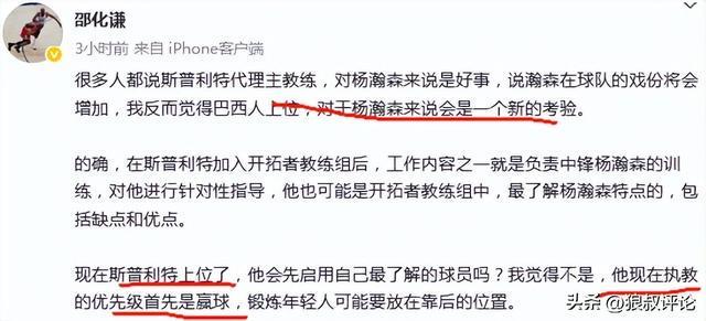 不久前,媒体人“邵化谦”发文点评:很多人都说斯普利特代理主教练,对杨瀚森来说是好事,说瀚森在球队的戏份将会增加,我反而觉得巴西人上位,对于杨瀚森来说会是一个新的考验。