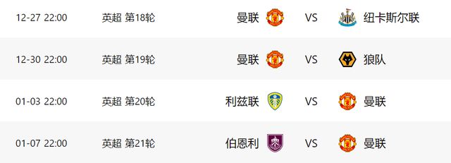 在客场,曼联6场拿到6分,不过他们也仅仅输给了曼城和布伦特福德,哪怕面对卫冕冠军利物浦,曼联依然拿到3分。接下来5个客场,面对水晶宫和维拉,曼联或许很难获胜,但是对阵狼队、利兹联和伯恩利这3支球队,曼联绝对有机会至少拿到2场胜利。