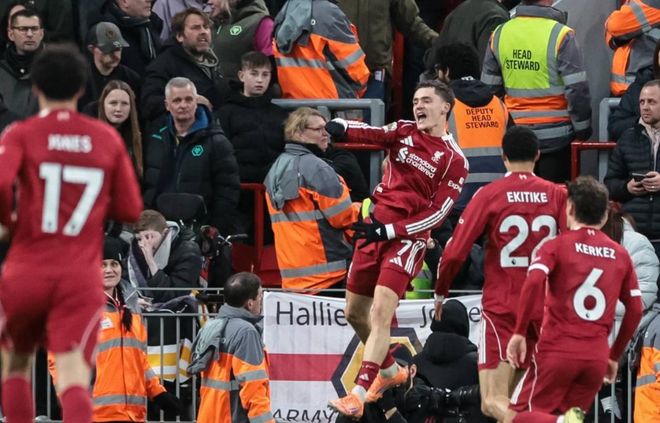 利物浦排出4231阵型。埃基蒂克顶在最前面。基耶萨、麦卡利斯特和维尔茨的进攻组合联袂出击。赫拉芬贝赫和琼斯组成双后腰。弗林蓬、科纳特、范戴克和凯尔凯兹4后卫首发出战。阿利松担任首发门将。加克波和罗伯逊坐在替补席待命。伊萨克重伤缺阵。萨拉赫去国家队踢比赛了。